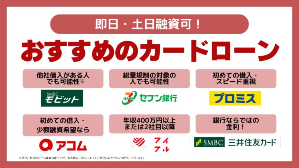 ここでは、20万円を借りるのにおすすめできるカードローンをご紹介します。