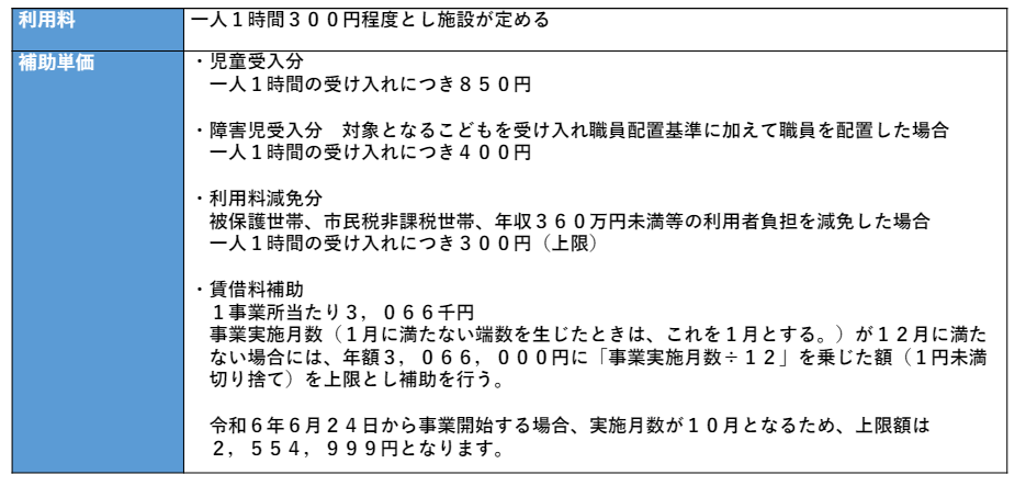 | 利用料 | 1時間300~400円程度 | 一時預かりと同水準を予定。 |