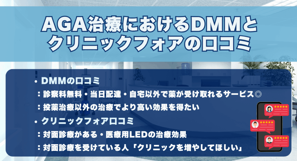 AGA治療におけるDMMとクリニックフォアの口コミ