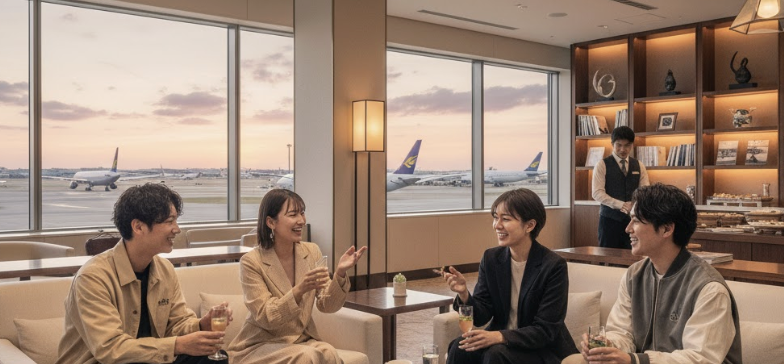 この特典により、出張時の待ち時間を快適に過ごせ、搭乗前後の疲労を軽減できます。加えて、一部ラウンジでは同行者も招待できるケースがあります。