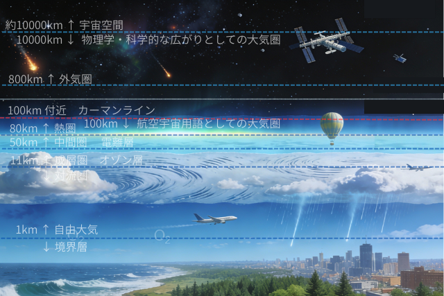私たちがふだん感じている空気は、この大気圏全体のごく一部にあたりますが、その構造を理解することは、地球環境と宇宙活動の両方を考えるうえで重要です。