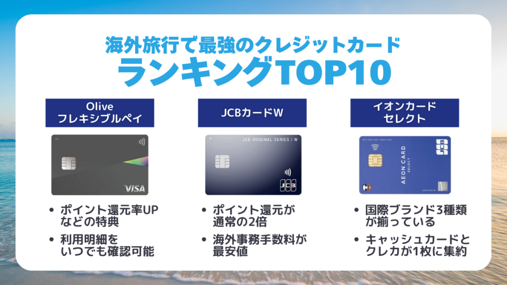 海外旅行で最強との意見が多いクレジットカード10種類の情報もご覧ください。