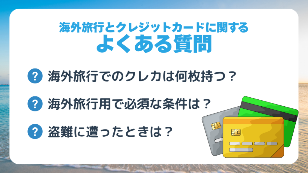海外旅行のためにクレジットカードを作りたいと考えている人の多くが抱えている疑問を紹介します。回答とあわせてご覧ください。