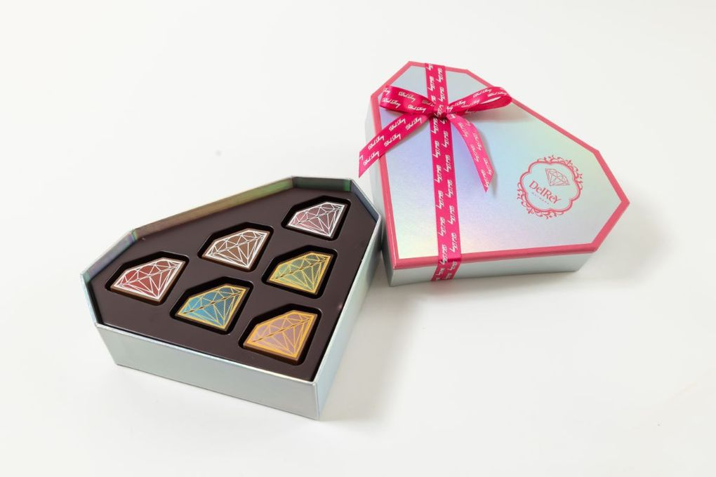 ダイヤモンド型のショコラと専用BOXの組み合わせは非常に印象的で、写真映え・特別感ともにトップクラスです。