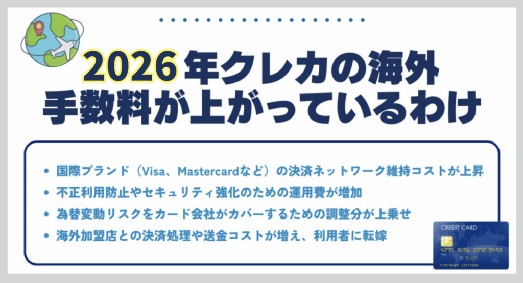 2026年に入って、海外でクレジットカードを使う際の手数料が上がっているのは、単なる値上げではなく「国際決済コストの高騰」が原因です。