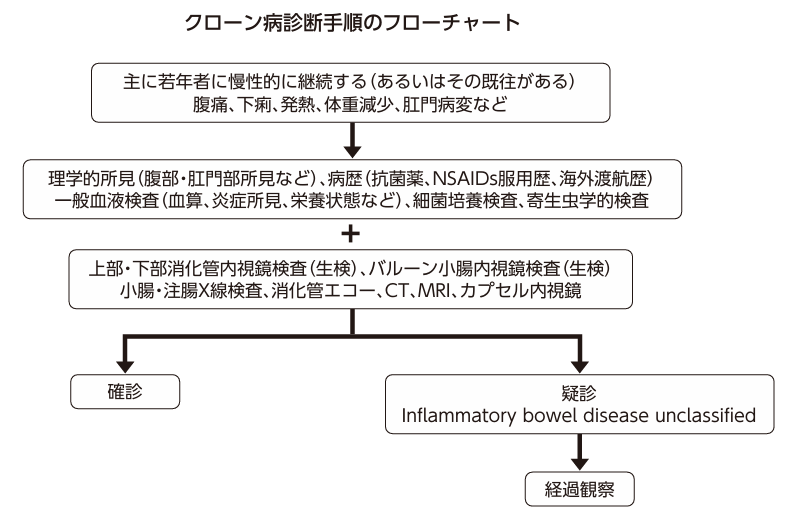 目視できる画像の他専門的な分析を経た検査結果も鑑み、クローン病に精通した専門医の診断が求められています。この指針には、重症度の分類や治療の指針も示されています。