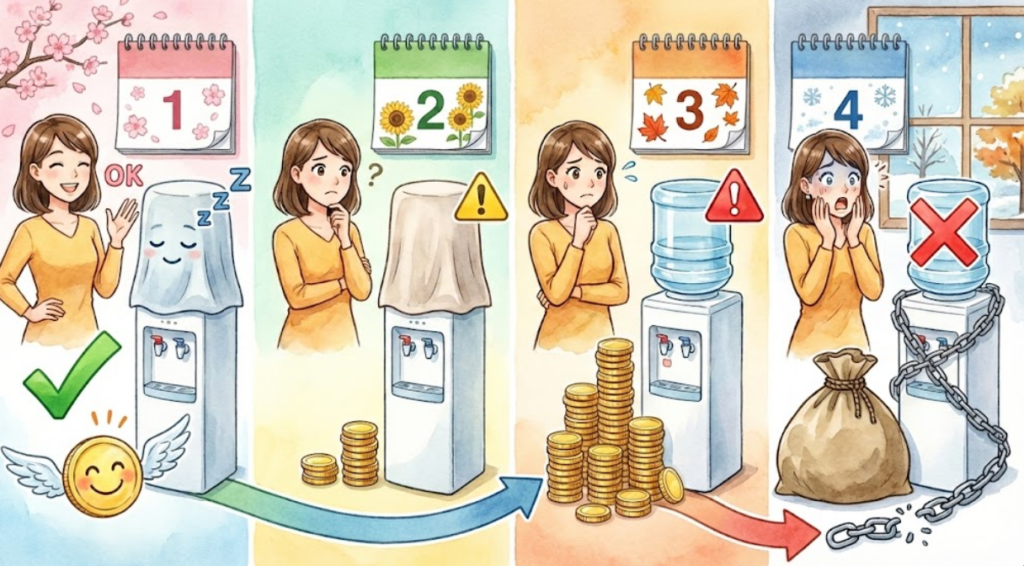 解約月はどこよりもウォーターがウォーターサーバーを回収した月です。