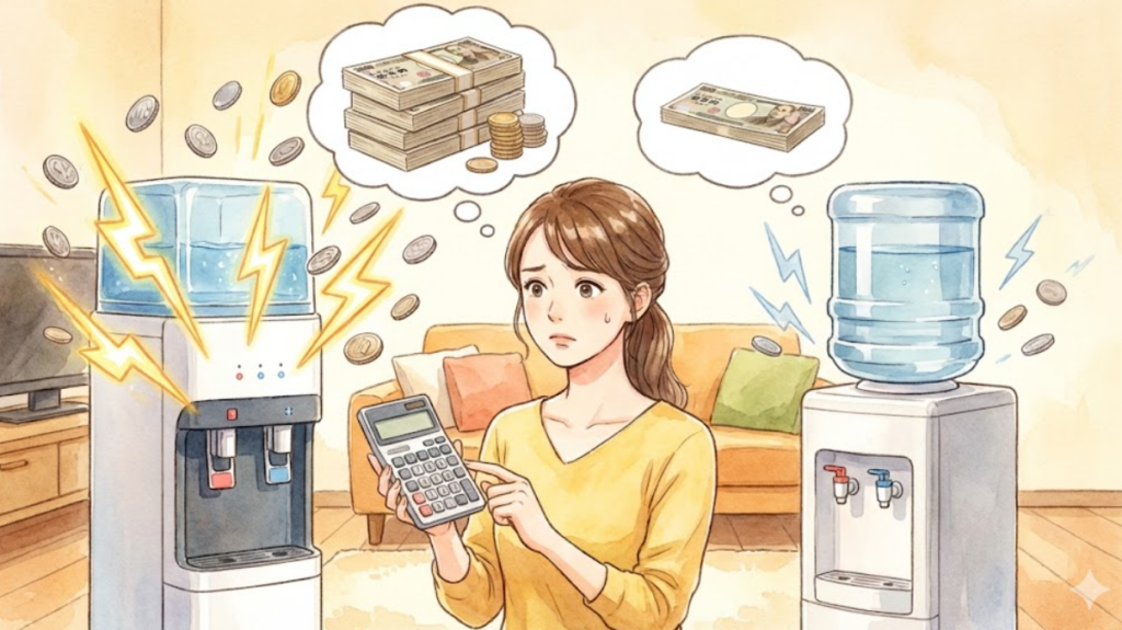 どこよりもウォーターは宅配型のウォーターサーバーで「水が高品質で美味しい」と高評価を受けています。その一方で、「水は美味しいけど電気代が高いと感じる」という声も見られます。