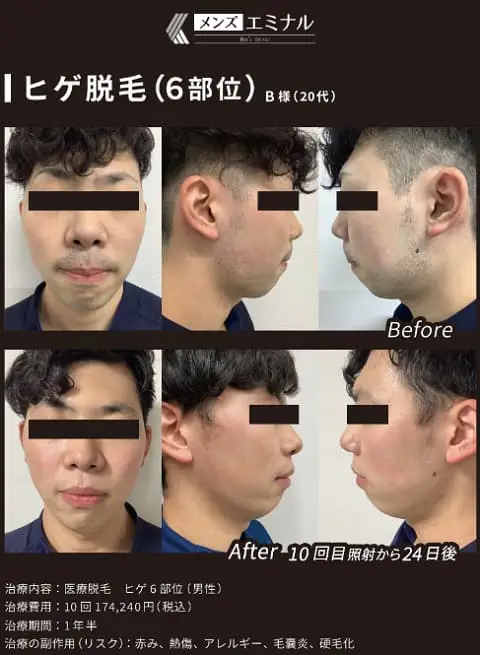 ここでは、エミナルクリニックメンズの髭とスネのビフォーアフターを画像付きで紹介します。