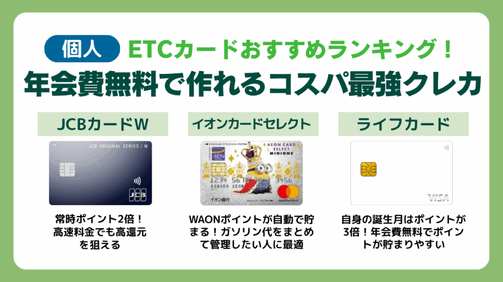 【個人】ETCカードおすすめランキング!年会費無料で作れるコスパ最強クレカ