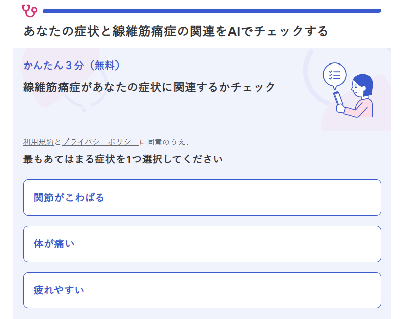 「線維筋痛症」とあなたの症状との関連性をAIで無料チェック