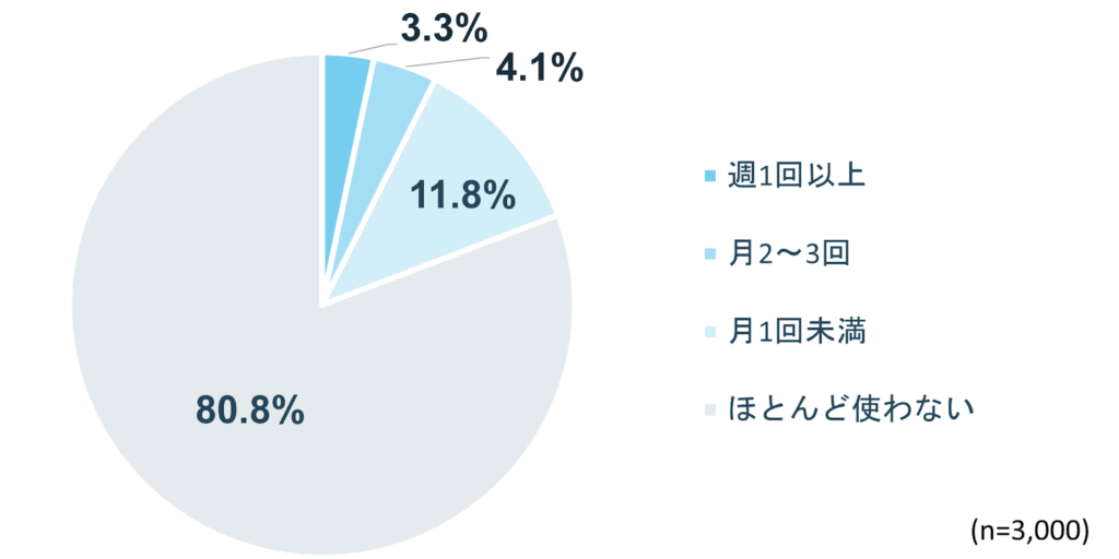 infoQのwebアンケートの調査結果から、フードデリバリーの利用頻度を見ていきます。それによると、ほとんど使わないと答えた人が80.8%と最も多い結果でした。