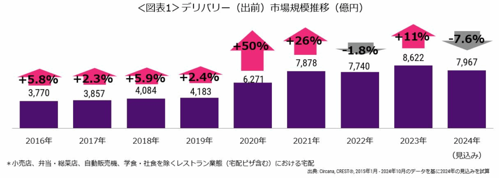 <外食・中食 調査レポート>2024年のデリバリー市場規模は7967億円の見込み 成長率は前年比7.6%減、コロナ前比90.5%増 | サカーナ・ジャパン / Circana Japan / NPD