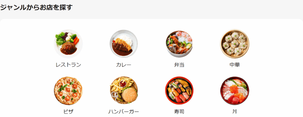 ウェブやアプリに表示された店の一覧から料理を選びます。「ピザ」「寿司」「和食」などのカテゴリー別にも分けられているので、参考にしても良いでしょう。タイムセールなどのイベントを利用するのも手です。