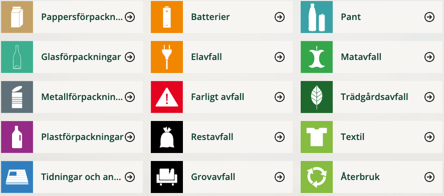 【スウェーデンのゴミ分別の主な種類(カテゴリー)】