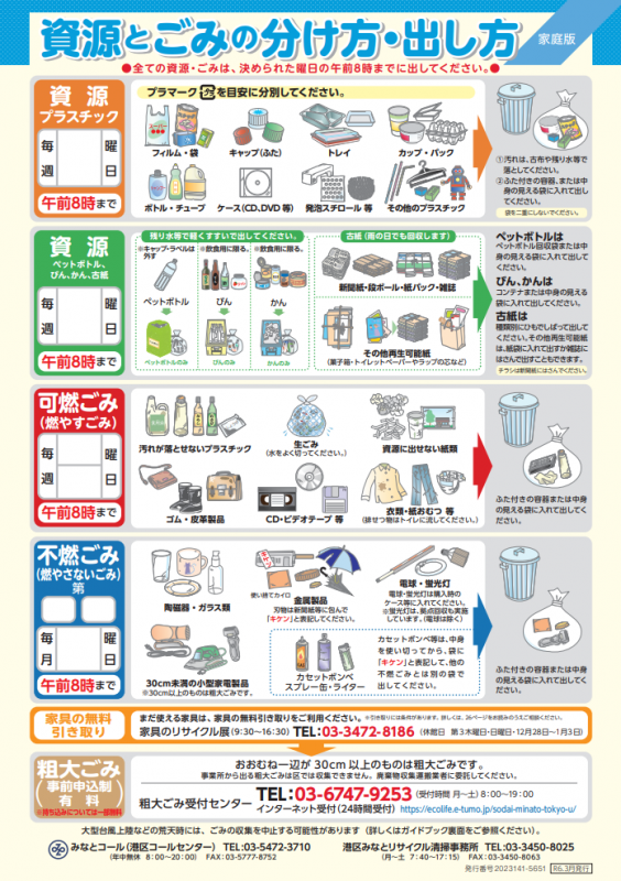【東京都 港区の資源とごみの分け方・出し方(家庭版)ポスター】