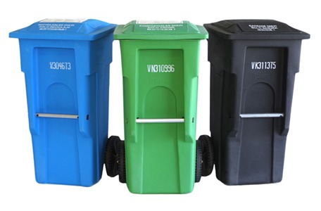 【サンフランシスコ市の家庭で使つかわれている3種類のごみ箱】