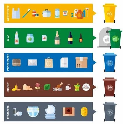 ドイツの家庭では、色分けされたゴミ箱による厳格な分別が基本です。