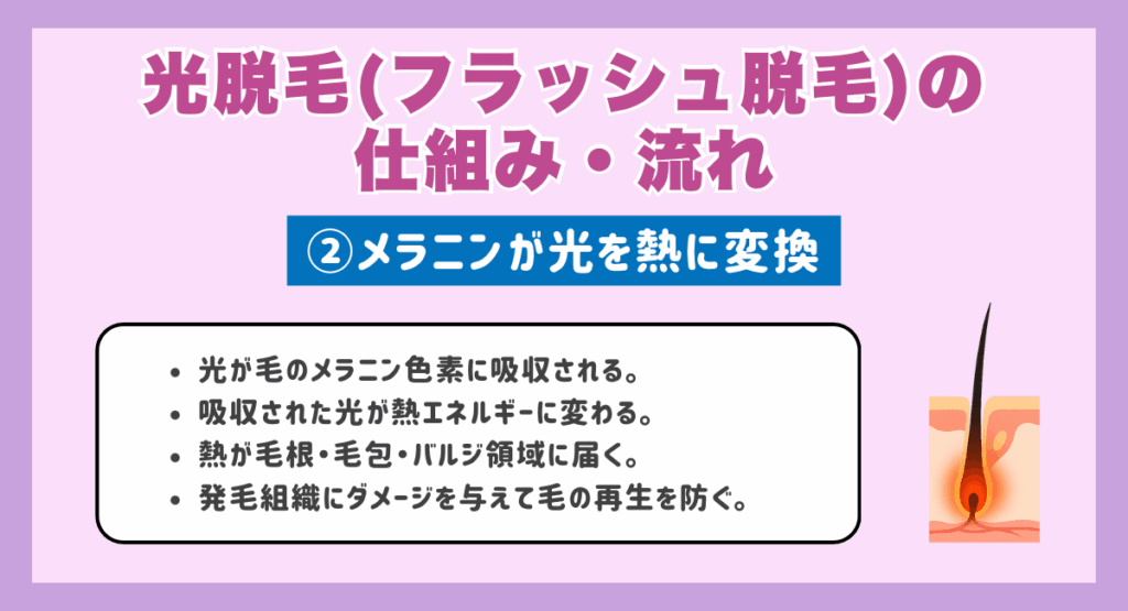 光脱毛(フラッシュ脱毛)はどうやって毛を処理するのでしょうか。ここからは、そのメカニズムを詳しく解説します。