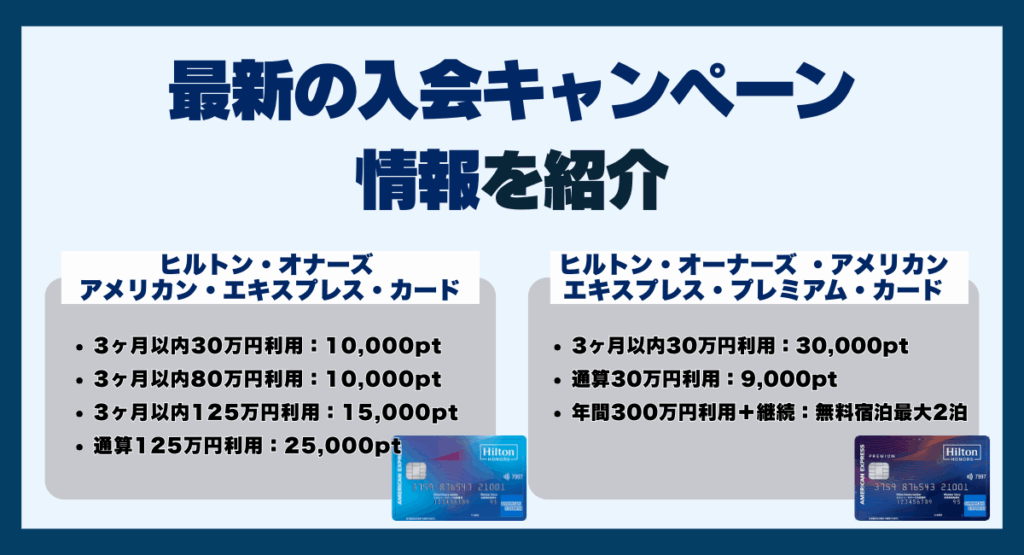 ヒルトンアメックスは、様々な入会キャンペーンを実施しています。
