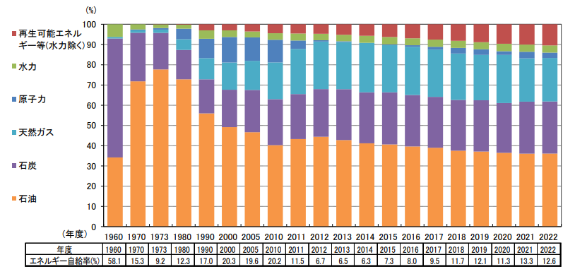 資源エネルギー庁『グラフで見る世界のエネルギーと「3E+S」安定供給①~各国の自給率のいま』