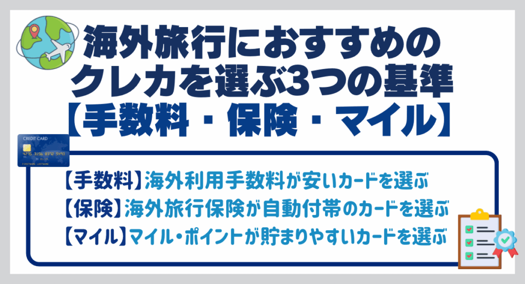 海外旅行で期待できるメリットの1つはマイルが日常生活よりも貯まりやすいことですが、マイルとポイントが貯まりやすいカードを選べばそのメリットがさらに大きくなるので、注意点に気をつけながらメリットを獲得しましょう。