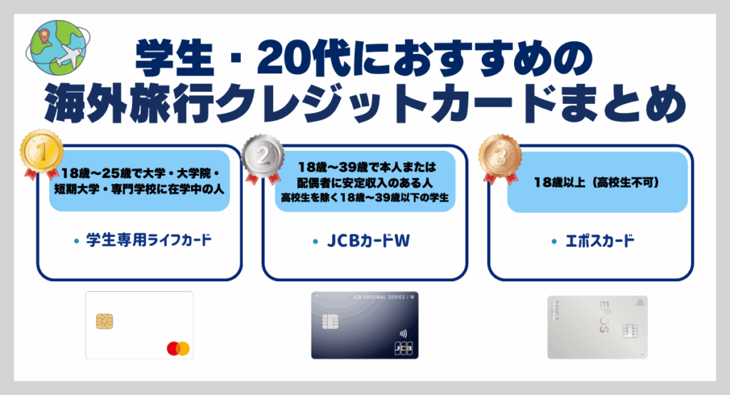 JCBカードWとエポスカードは、高校生が作れないという難点はあるものの、学生や20代が利用しやすい特典が他のクレジットカードよりも多く提供されています。