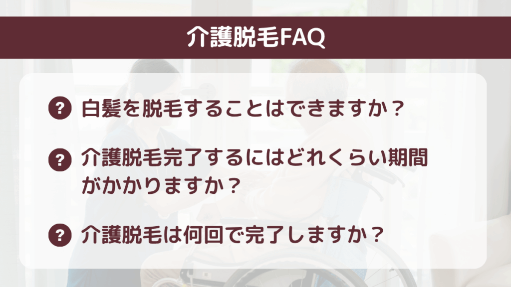 介護脱毛を検討する際、多くの人が気になるのは「白髪でも脱毛できる?」「費用や回数はどのくらい?」といった具体的な疑問です。