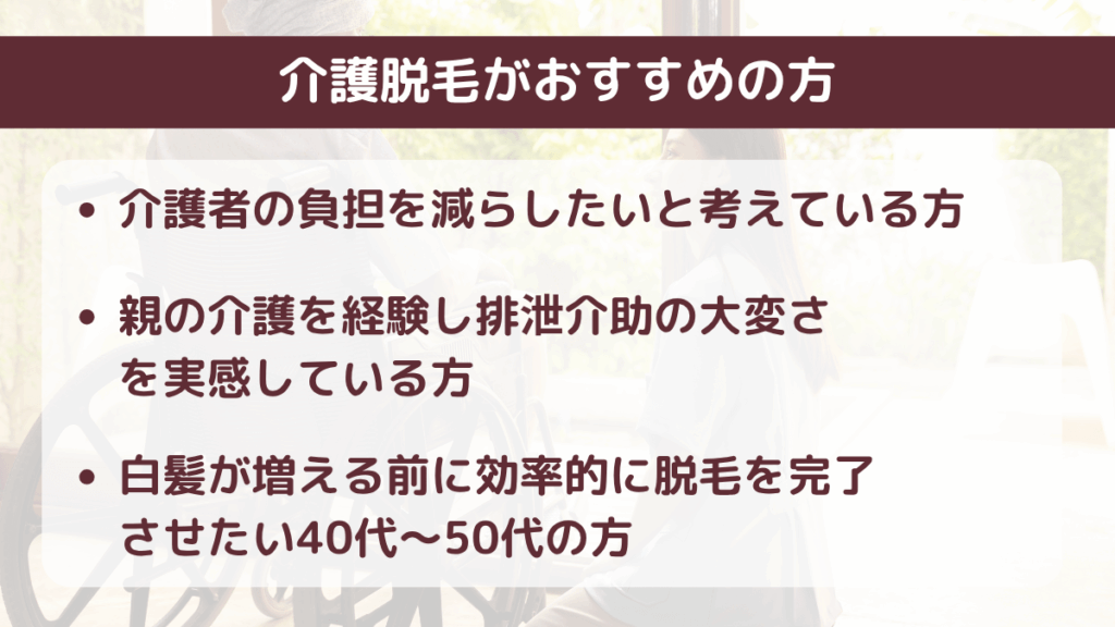 ここでは、どんな人に介護脱毛が向いているのかを詳しく紹介します。