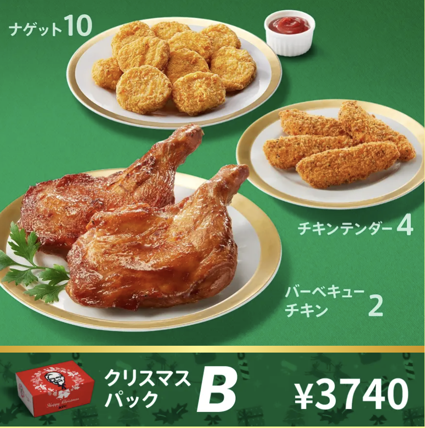 複数のチキンメニューを一度に楽しめる構成で、「せっかくのクリスマスだから色々食べたい」という人に向いています。