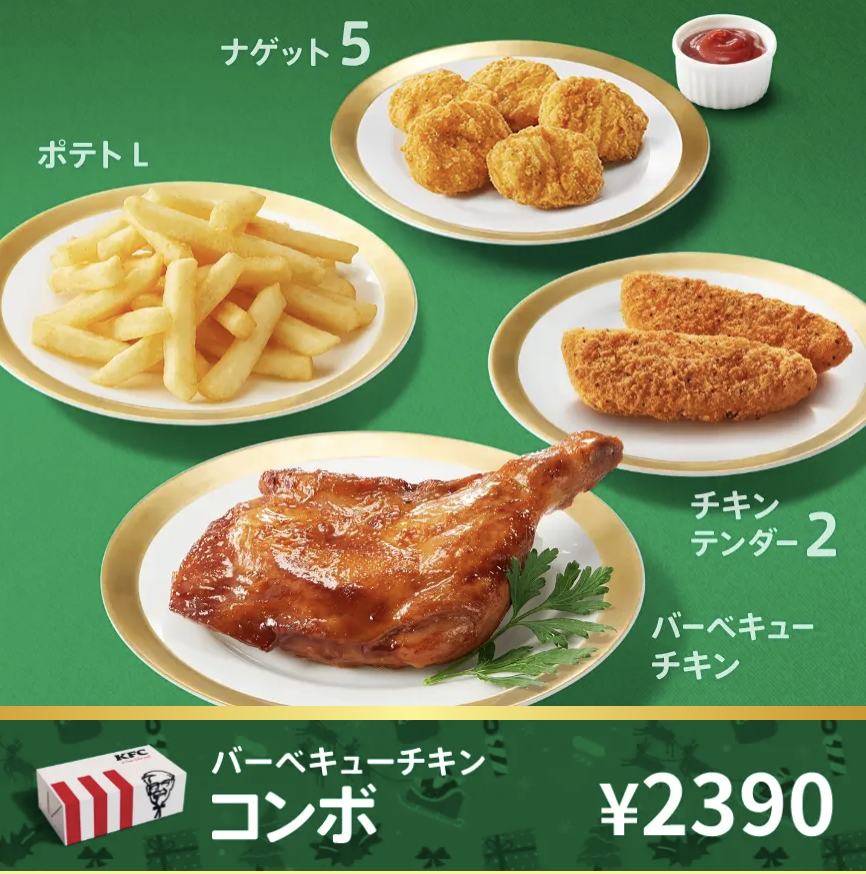 | 単品・コンボ | バーベキューチキンコンボ | 手軽にクリスマス気分を楽しめる |