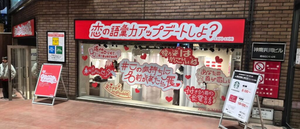 バレンタインを控えた時期にあわせ、恋愛の中で生まれる微細な感情や状況にフォーカスした構成となっている。開催初日に会場を訪れ、その狙いと空間設計を体験した。