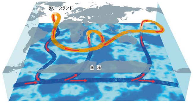 【海洋大循環のイメージ。1周するのに1,000~2,000年かかる】