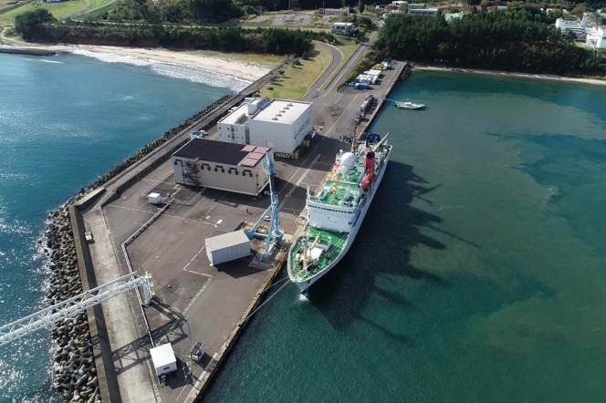 【むつ研究所に停泊しているJAMSTECの海洋地球研究船「みらい」】