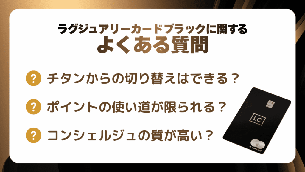 ラグジュアリーカードブラックを検討する段階では、特典や年会費だけでなく、切り替え方法やポイントの使い道、実務での使いやすさなど細かな疑問が出てきます。
