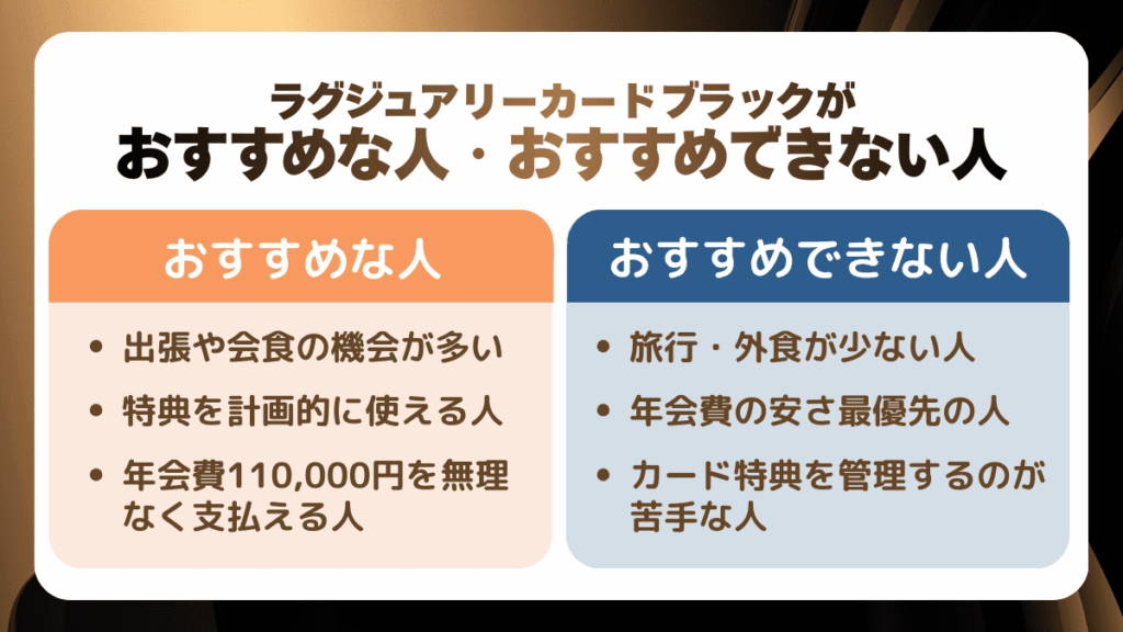 ラグジュアリーカードブラックは「特典を使う前提がある人」に向いているカードです。