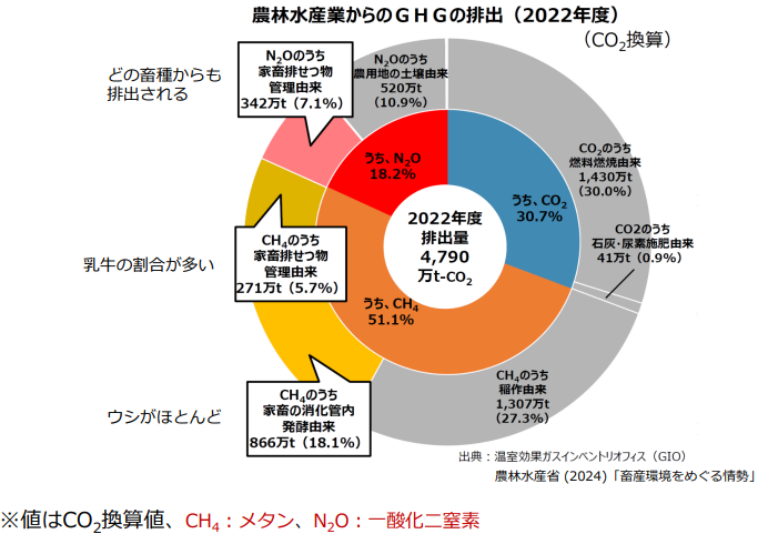 【⽇本の農業・畜産における温室効果ガス(2022年度)】