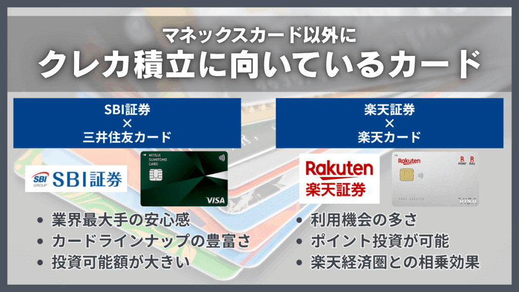 マネックスカード以外にクレカ積立に向いているクレジットカードについても紹介します。