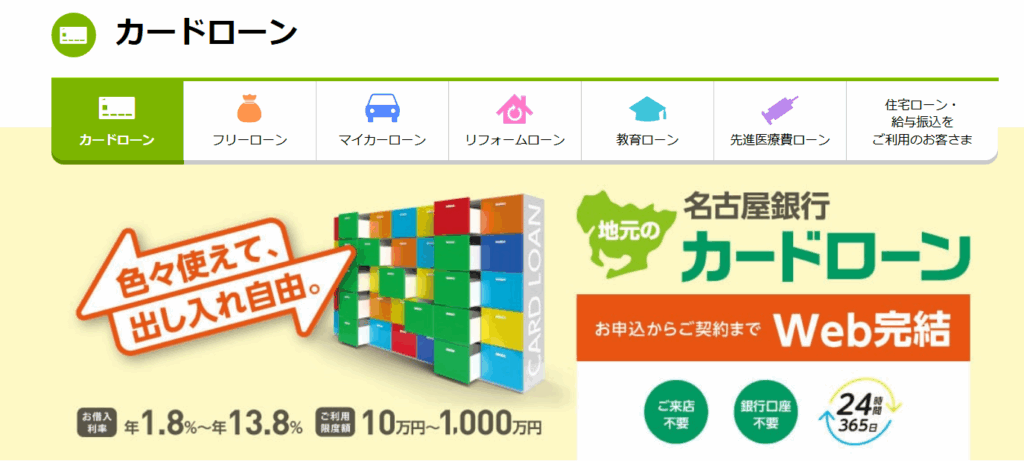 | 商品名 | 名古屋銀行カードローン(Web完結) |