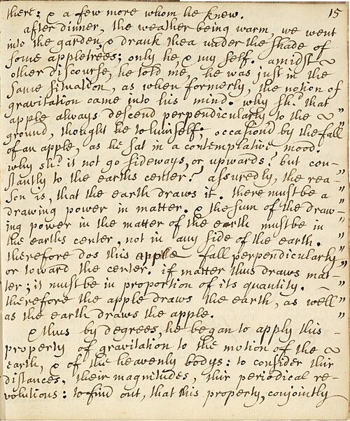 ※1726年4月15日にニュートンから直接聞いた話を書き留めたもの