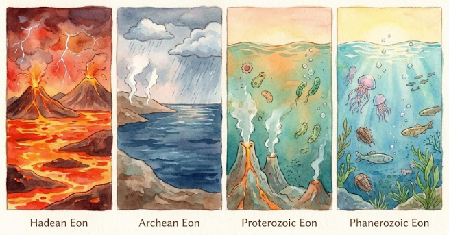 ここでは、原始地球がどのように冷却し、海と大陸が形づくられ、生命誕生につながる環境が整ったのかを確認します。