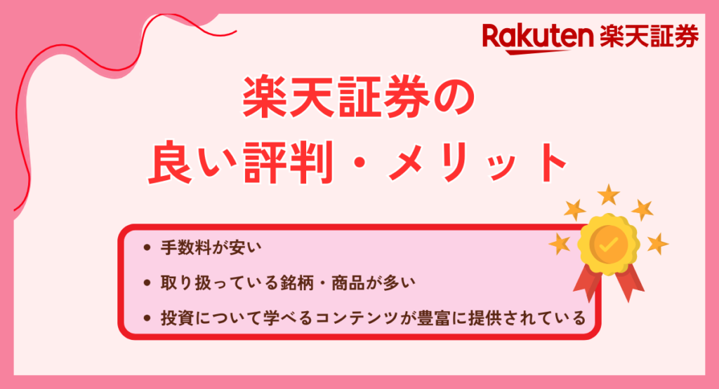続いて、楽天証券の良い評判・メリットを紹介します。