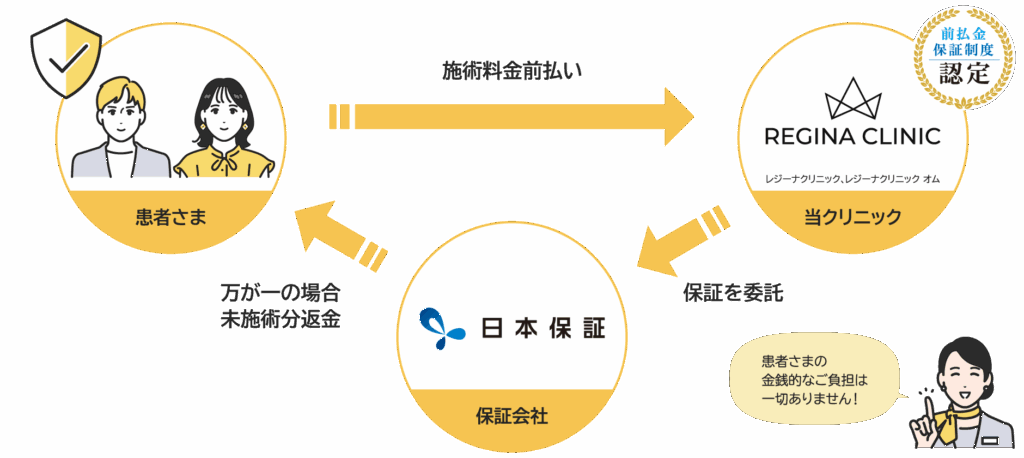 レジーナクリニックオムでは、契約時に支払った料金を安心して管理できる「前払金保証制度」を採用しています