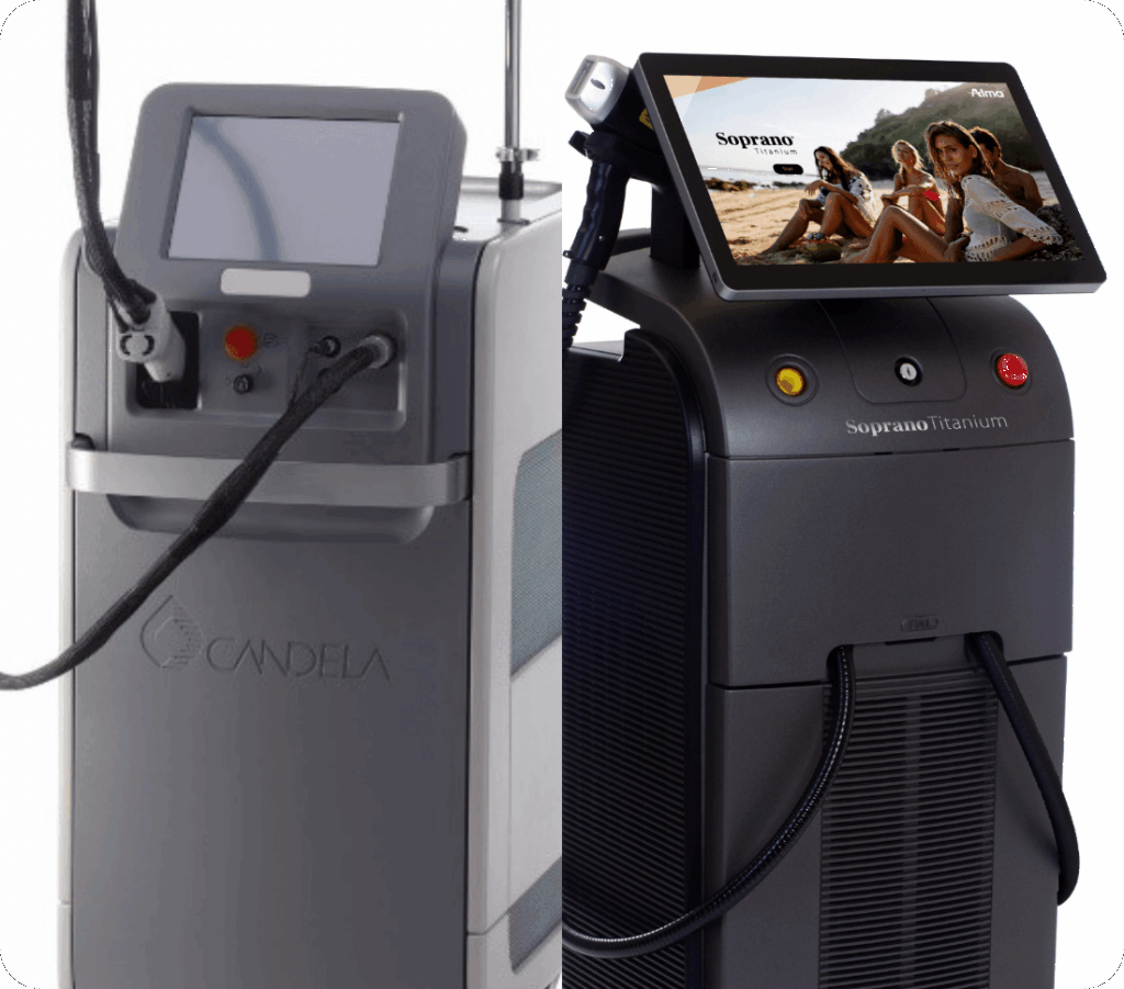 レジーナクリニックオムでは熱破壊式・蓄熱式のレーザー機を使い分けるため、部位や毛質に合わせて最適な機器で照射を行います。