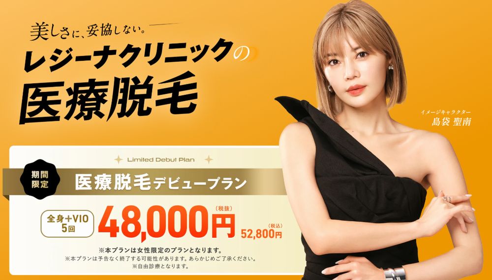 レジーナクリニックのデビュープランは、レジーナクリニックを初めて利用する人であれば、全身27箇所+VIO5回が52,800円で受けられる人気のプランです。施術部位は全身+顔+VIOの全37箇所。