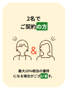 2名一緒に契約をすると、契約金額から最大10%オフの割引を受けられる、特別プランです。