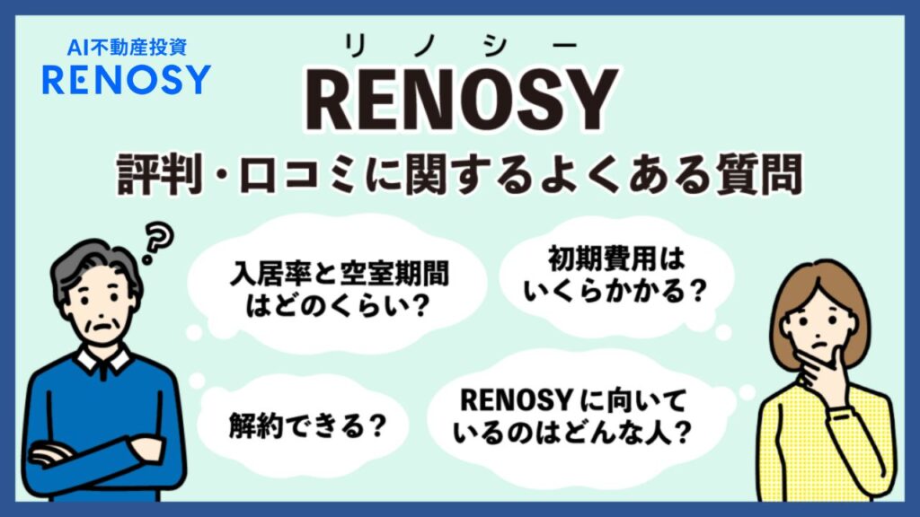 RENOSY(リノシー)での不動産投資を考えている人が気になっている評判・口コミに関連した質問とその回答を紹介します。