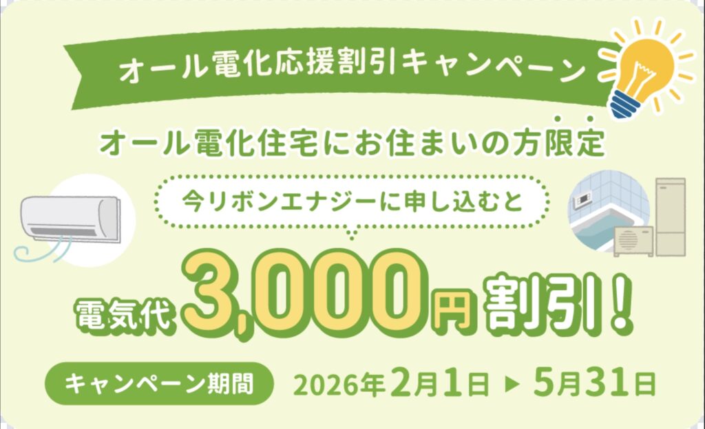 なんと今の時期お得なキャンペーンをしています。リボンエナジーは滅多にキャンペーンを実施しないので今がチャンス!