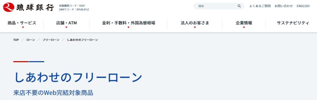 | 商品名 | しあわせのカードローン(琉球銀行) |
