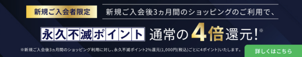 1,000円の利用ごとに1ポイント付与される永久不滅ポイントには有効期限が設定されていないので「無限に貯めていけるのがうれしい」と利用者に好評です。